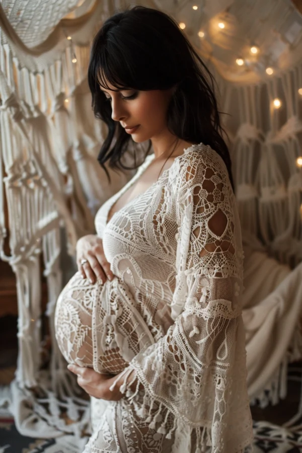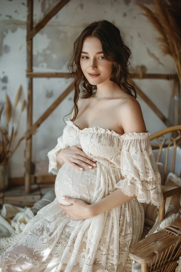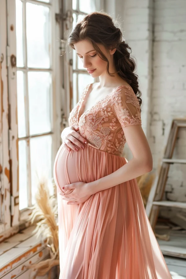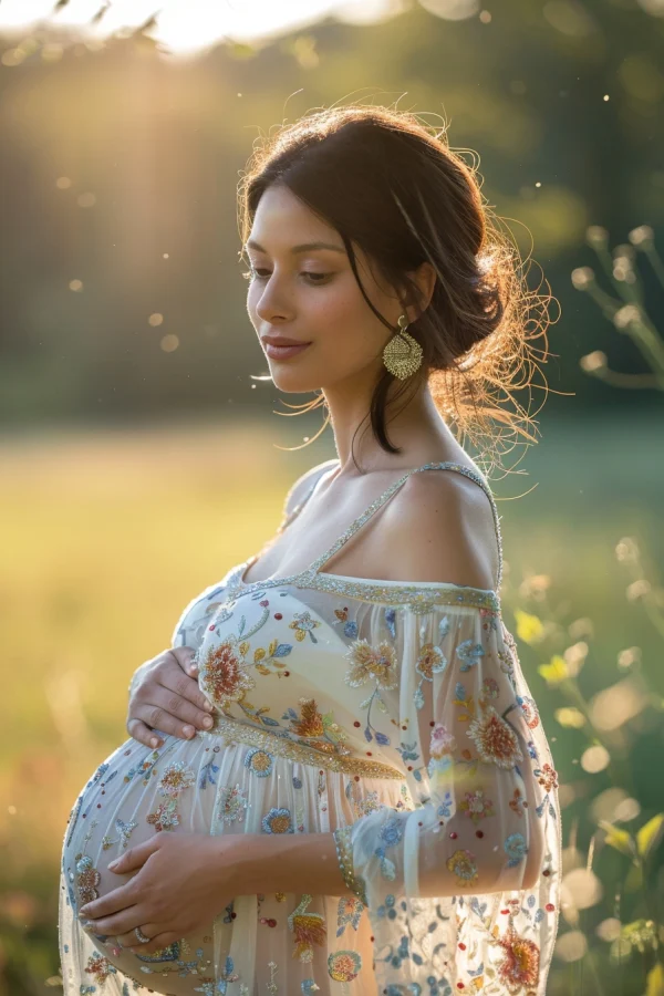 - هل تريدين أن تشعري وكأنك ملكة مطلقة في صور الأمومة الخاصة بك؟ دللي نفسك بفستان مطرز أو مزخرف بشكل مذهل!