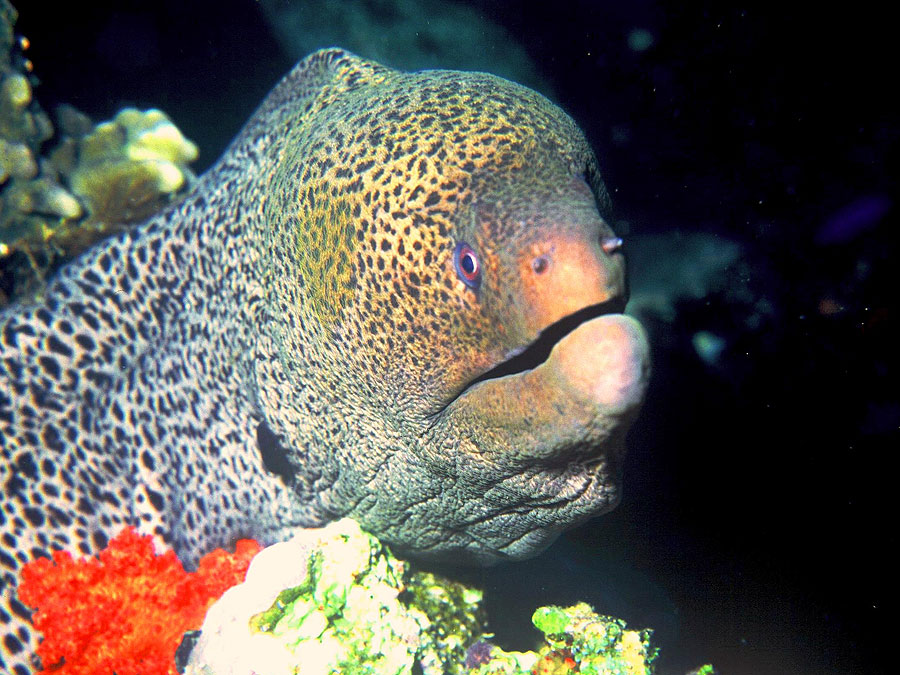 ثعابين موراي العملاقة في مصر تكون أحيانًا قبيحة ومخيفة أحيانًا وذات حجم كبير ، كما أنها أسياد الشعاب المرجانية في البحر الأحمر. مع أجسام مرنة وقابلة للتكيف بشكل لا يصدق ، فإنها تنزلق بسهولة عبر أضيق الممرات بين الشعاب المرجانية. حتى لو لم يكونوا في حالة مزاجية سيئة ، فإن مظهرهم المهدد وفكهم القوي يحظى باحترام الغواصين. الاحترام المتبادل والإعجاب هو العلاقة المرغوبة المطلوبة بين الغواص وأنقليس موراي العملاق.