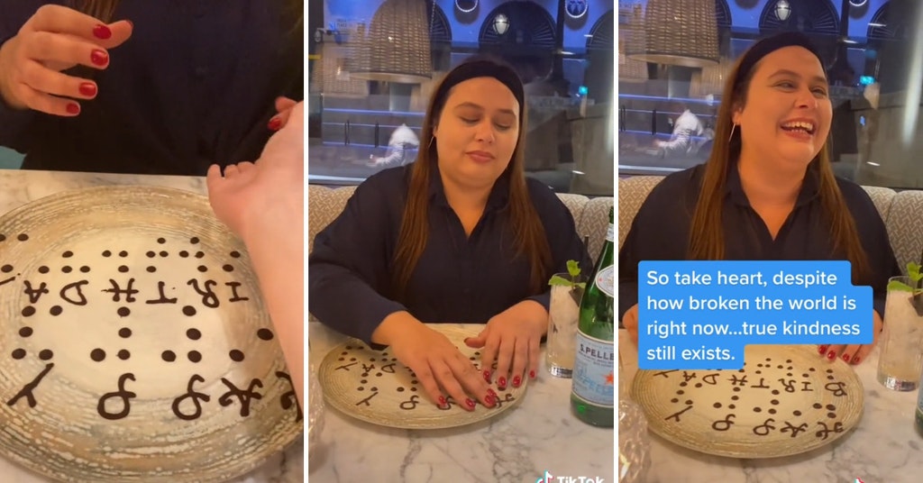بالفيديو شاهد مطعم يكتب "عيد ميلاد سعيد" بطريقة برايل للمرأة الكفيفة