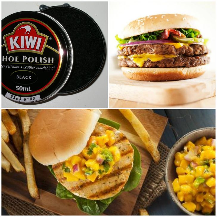 فطائر البرجر تكاد تكون نيئة في الإعلانات ويتم تحميصها لبضع ثوان لتبقى كبيرة ورائعة حيث يقوم المصورون بتلوينها بتلميع الأحذية وإنشاء علامات شواء بأسياخ ساخنة