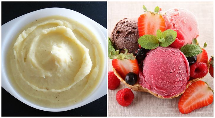 يذوب الآيس كريم بسرعة كبيرة تحت أضواء الاستوديو الساخنة.لذلك ، يستبدلها المصورون بالبطاطا المهروسة الملونة أو عجينة من النشا والسكر المثلج وشراب الذرة والدهون ومكونات أخرى.