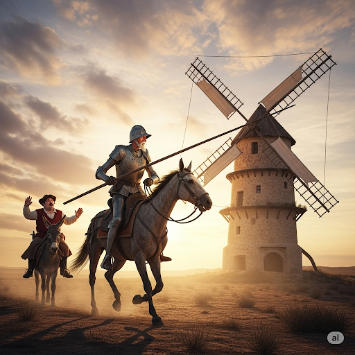 ما هي الشخصية الخيالية التي حاربت طواحين الهواء؟
