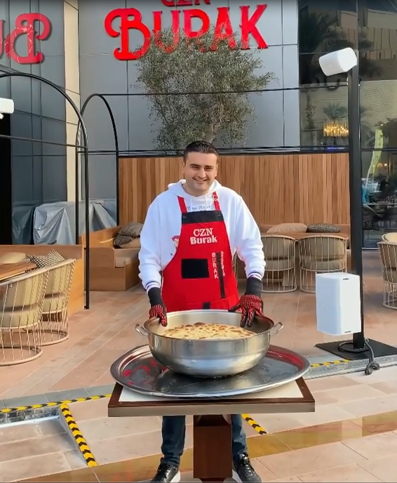 ولكن فيديو اليوم مختلف عما قدمناه من قبل حيث فشل الشيف بوراك لأول مرة في قلب الطنجرة التي بها الطعام علي الصينية الكبيرة ووقعت معه ومعه التربيزة وأسرع المساعدين في حمله هو والطنجرة فهل أصيب الشيف بوراك بالحسد أم انها مجرد صدفة