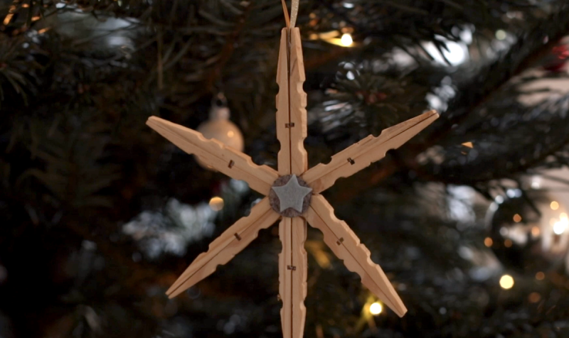 2- طريقة عمل نجمة عيد الميلاد من مشابك الغسيل الخشبية