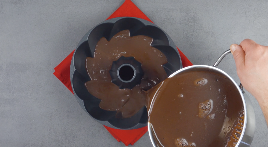 • اشطف قالب السافارين بالماء البارد واملأه بحوالي نصف الخليط.