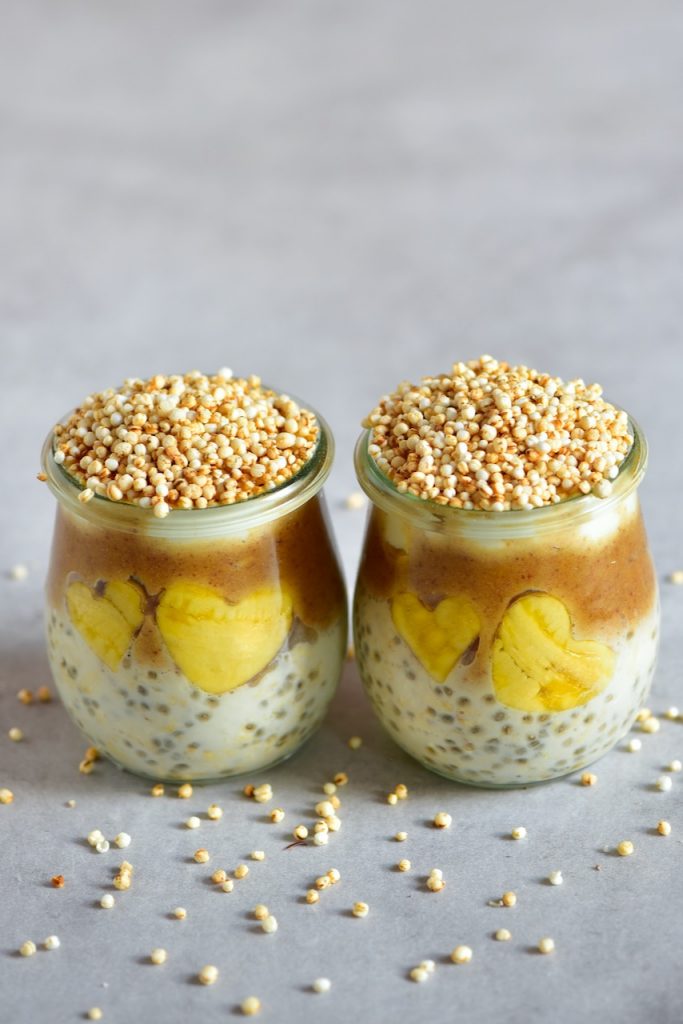 - نخلط الشوفان الملفوف مع بذور الشيا والحليب.