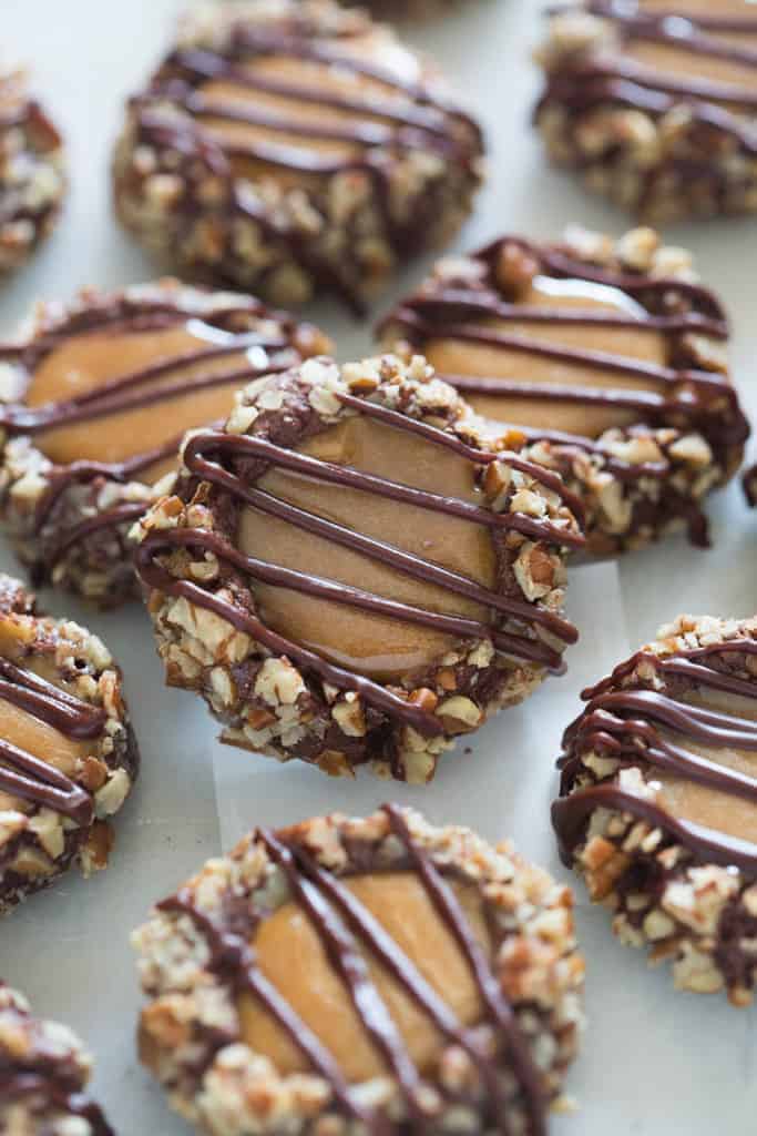 - صب ملاعق صغيرة من الكراميل في البسكويت.