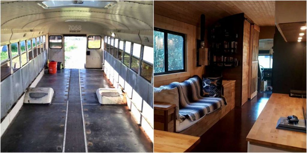 كان مايكل تالي غير راضٍ عن ارتفاع تكاليف المعيشة في أوستن ، تكساس لذلك إشترى حافلة مدرسية قديمة من منطقة مدارس أوستن المستقلة مقابل 2200 دولار لتعديلها لتصبح منزلًا صغيرًا مزين بمركز ترفيهي ومطبخ صغير وغرفة نوم.وواجه مشاكل كثيرة واستطاع التغلب عليها ليحصل علي بيت مريح متنقل