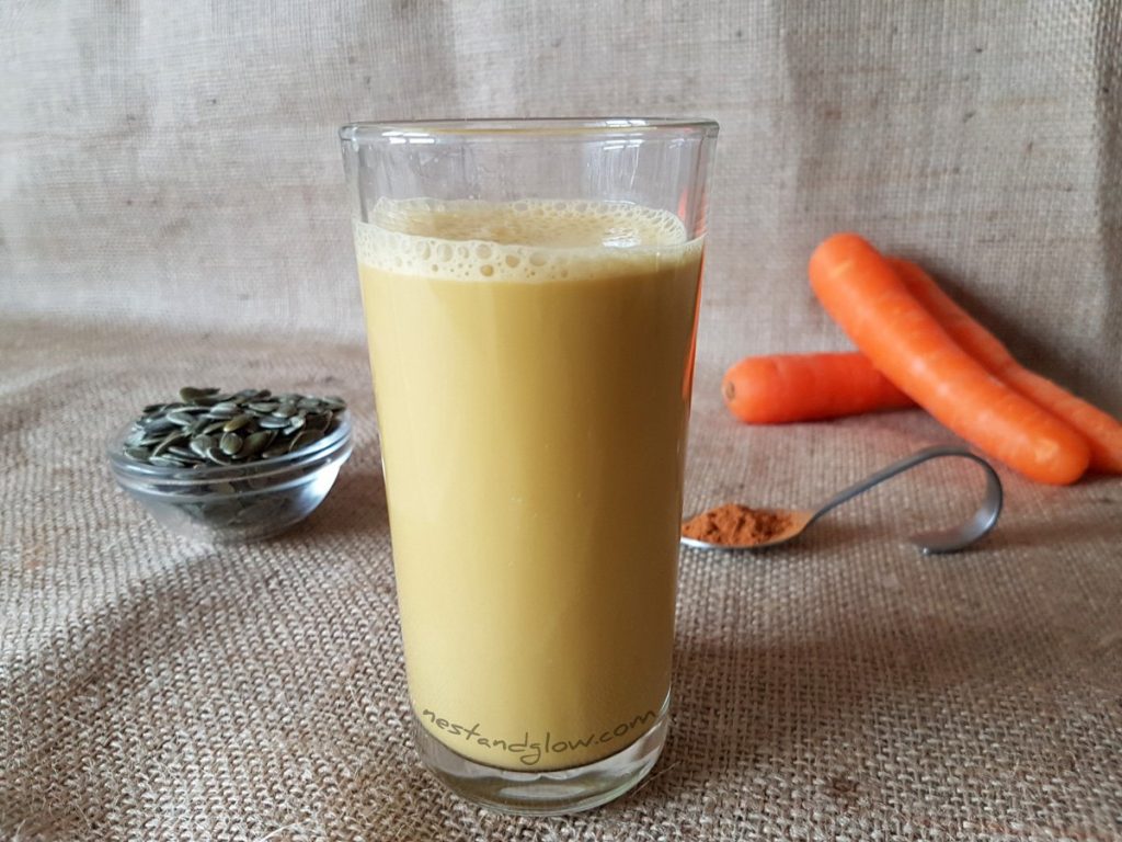 الحليب الذهبي مصنوع من بذور اليقطين المنبتة والجزر والقرفة ويمكنك إضافة القليل من الكركم لفوائد صحية إضافية