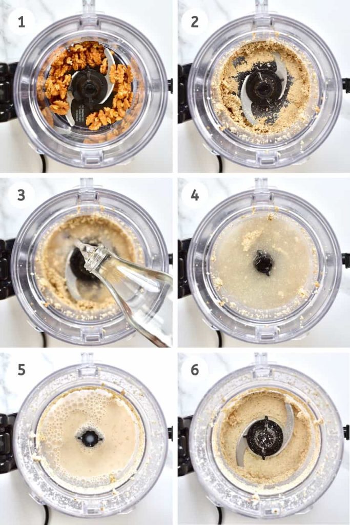 - أضف الجوز المنقوع في خلاط / معالج عالي السرعة.