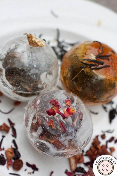 - فهي كرة كريستالية مملوءة بأكياس الشاي والزهور الصالحة للأكل وتذوب عند سكب الماء الساخن عليها. هذا الشاي المزهر لذيذ وسهل ومذهل.