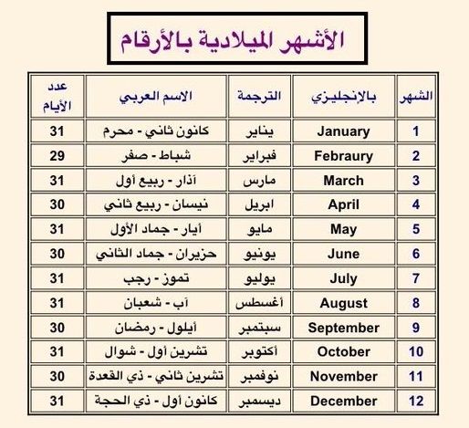 تستخدم هذه الأسماء بشكل أساسي في العراق وسوريا ولبنان والأراضي الفلسطينية والأردن من المحتمل أن تكون هذه الأشهر مشتقة من الأسماء الآرامية للتقويم القمري السامي القديم