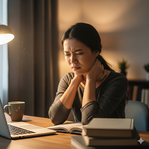 - وضعية سيئة تضغط على العمود الفقري والرقبة