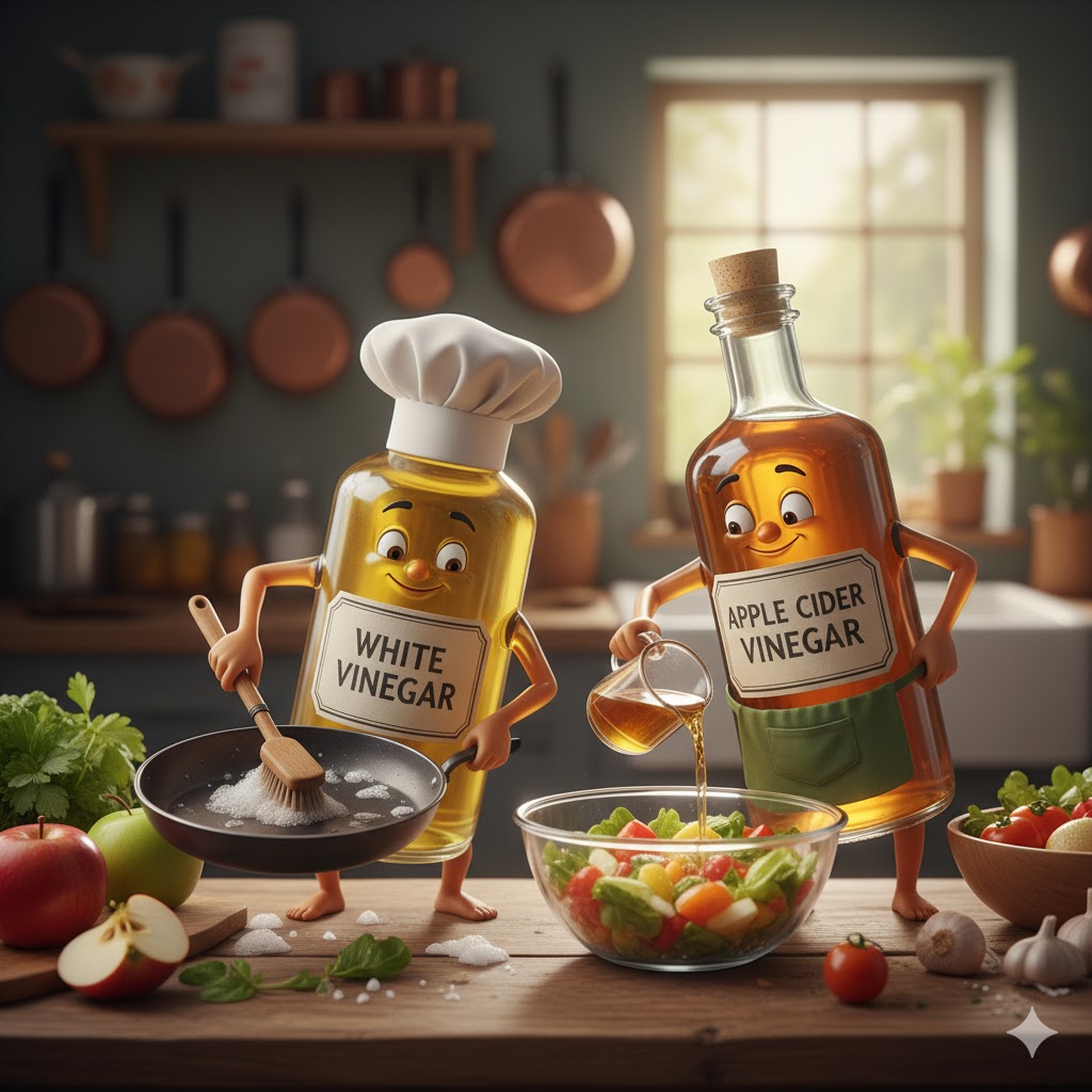 سنتحدث عن نوعين: خل التفاح والخل الأبيض. أحدهما فاكهي وناعم بلون ذهبي، والآخر نقيّ وقويّ، ويُعدّ من أفضل أنواع الخلّ في المنزل.