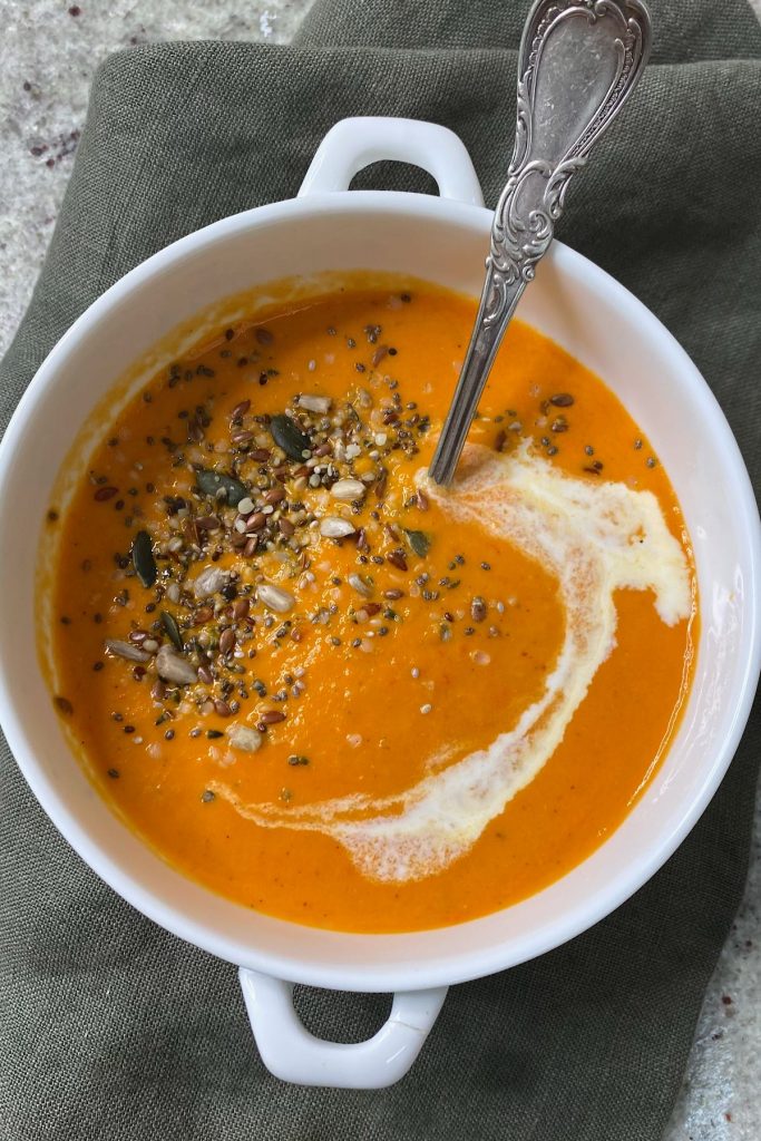 - حساء الطماطم المحمص هذا مناسب أيضًا للمجمد ويمكن تخزينه لمدة تصل إلى 3 أشهر . ومع ذلك ، تجدر الإشارة إلى أن الكريمة يمكن أن تتخثر عند إعادة تسخينها ، لذا قد يكون من الأفضل حذف الكريمة في الوقت الحالي إذا كنت ستصنعه خصيصًا للتجميد (يمكنك إضافة الكريمة عند إعادة تسخين الحساء).