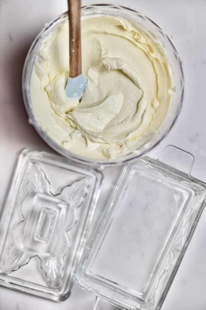 - عندما يتم تجفيفه تمامًا ، يجب أن يكون المنتج النهائي نسخة أكثر دسمًا وأكثر سلاسة وأخف وزناً من الجبن الكريمي التي ربما تكون معتادًا عليها.