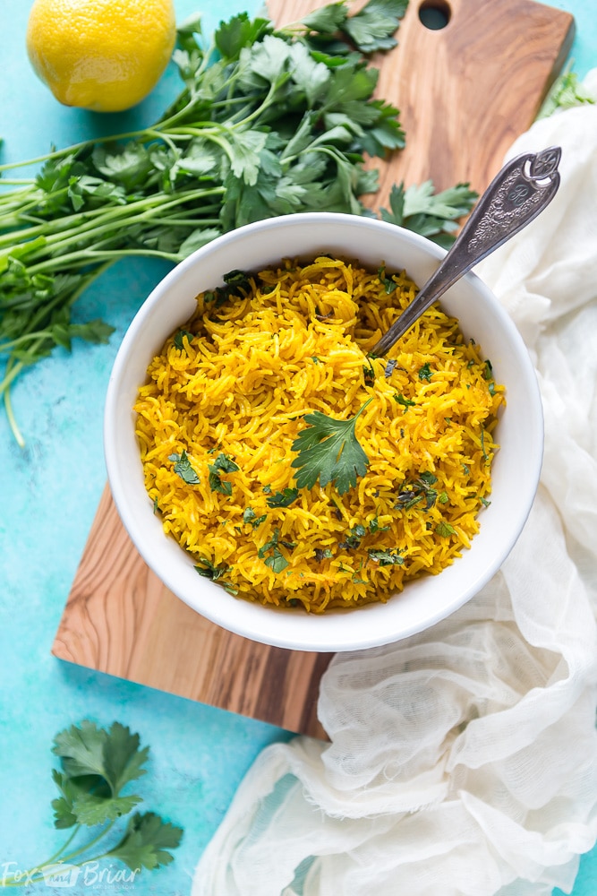 وصفة أرز الكركم النابضة بالحياة هي طبق جانبي سريع وسهل مثالي لإضفاء الإشراق على عشاءك الليلي