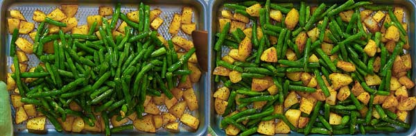 - أخرجي البطاطس من الفرن وأضيفي الفاصوليا الخضراء فوقها. ا