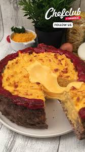 نضع اللحمة المفرومة في صينية قابلة للفتح ونضغط عليها جيدا مع فردها بالكامل بالتساوى