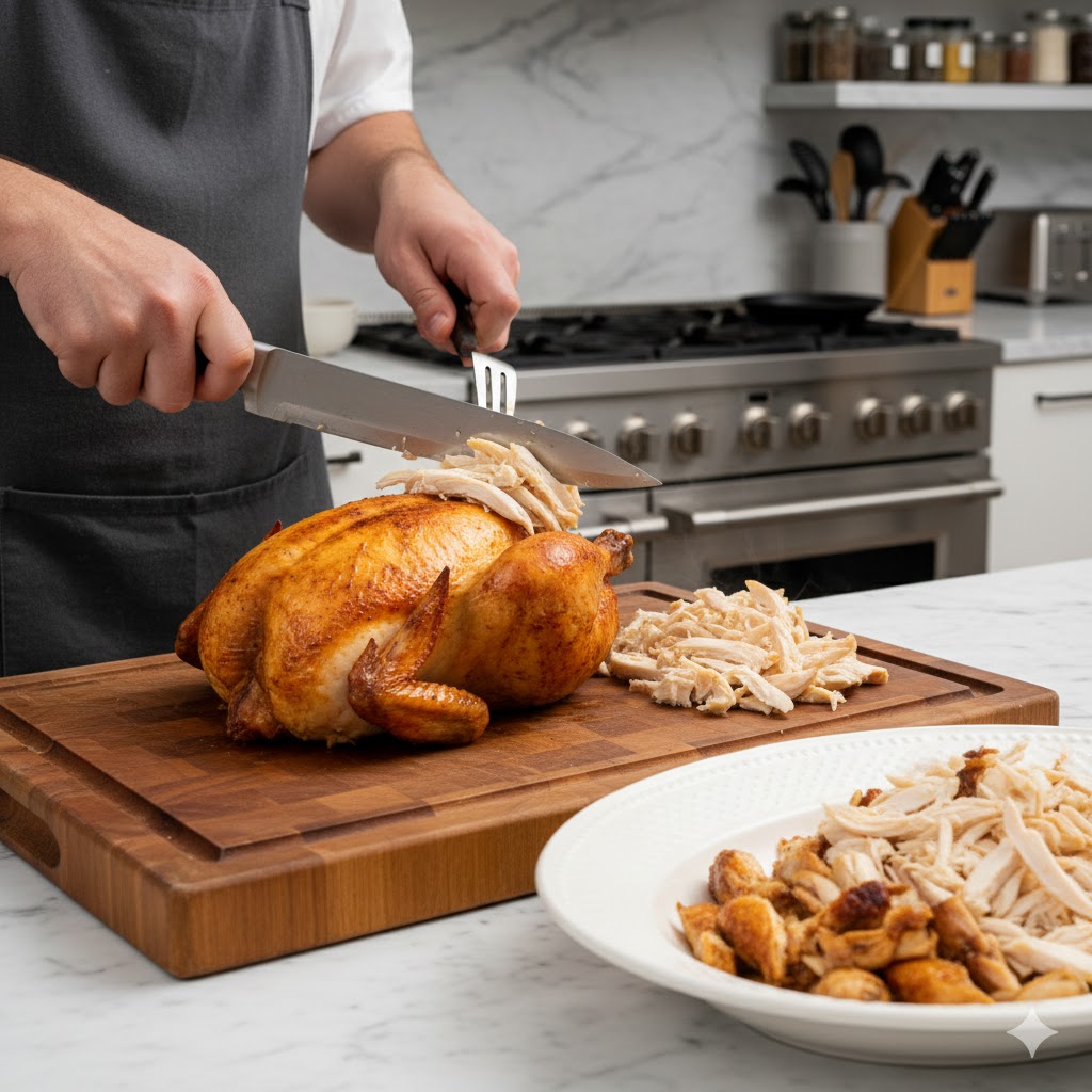 - انقلي الدجاج إلى طبق وضعيه جانبًا.