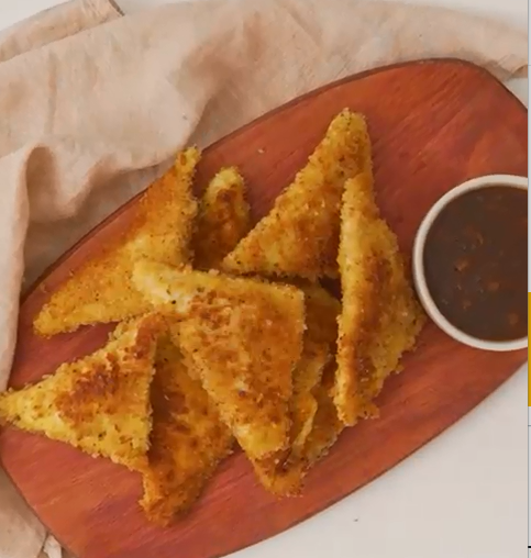 - اغمس كل جيب خبز في البيض المخفوق ، متبوعًا بفتات الخبز.