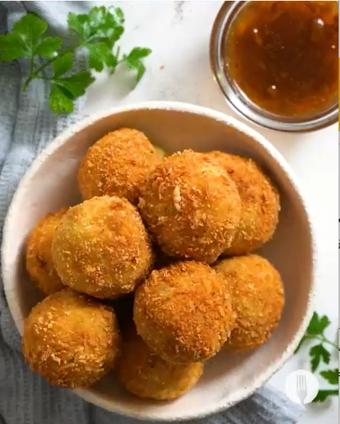 - رتبي كرات البطاطس المقرمشة في طبق التقديم.