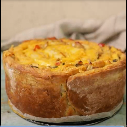 طريقة عمل فطيرة الدجاج بالجبن والخضروات