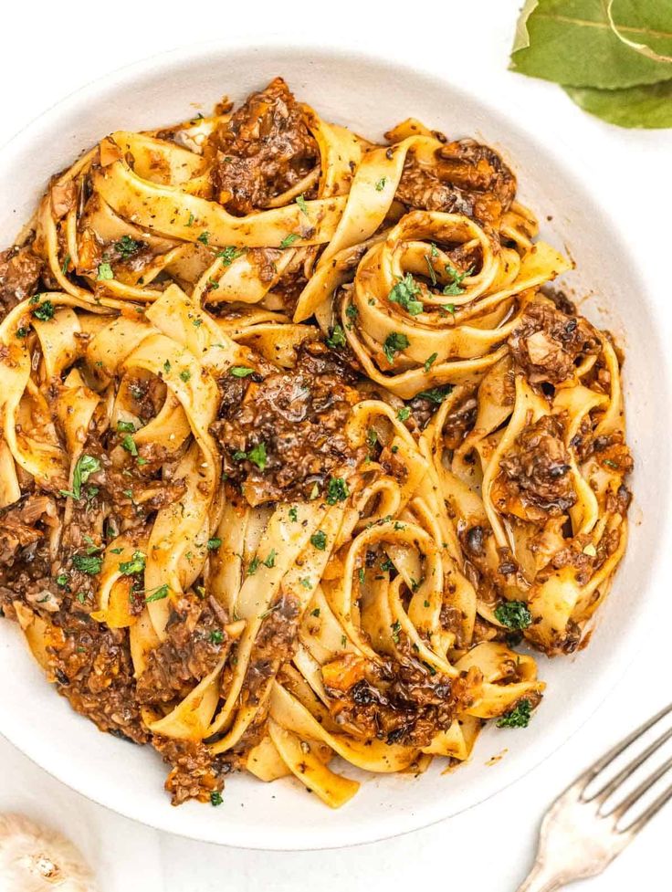 راجو الفطر هذا هو بديل سهل ومتعدد الاستخدامات بدون لحم لصلصة البولونيز، وهو ممتاز لعشاء عائلي يومي حيث يمكنك إعداده في ما يزيد قليلاً عن 30 دقيقة بمكونات بسيطة وبأسعار معقولة ،إنها بولونيز فطر سريعة وغنية ولذيذة تتناسب بشكل مثالي مع السباغيتي أو الفيتوتشيني أو فوق عصيدة من دقيق الذرة أو في اللازانيا.