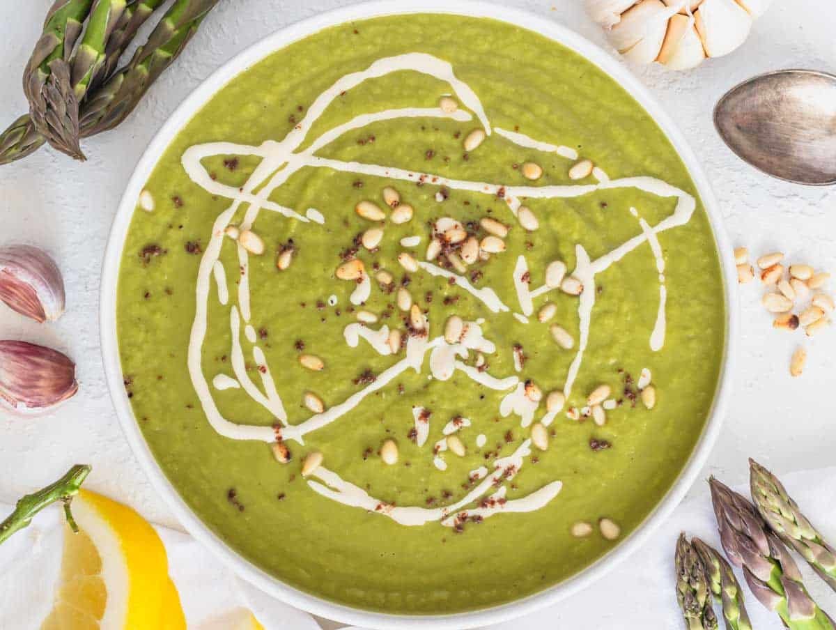 • إنه الحساء المثالي لفصل الربيع خلال موسم الهليون، ولكن يمكنك أيضًا تحضيره طوال العام باستخدام الهليون المجمد.