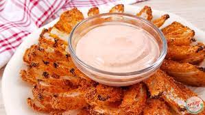 البصل المشوى من المقبلات الصحية المثالية وتقدم مع صلصة التغميس الحارة