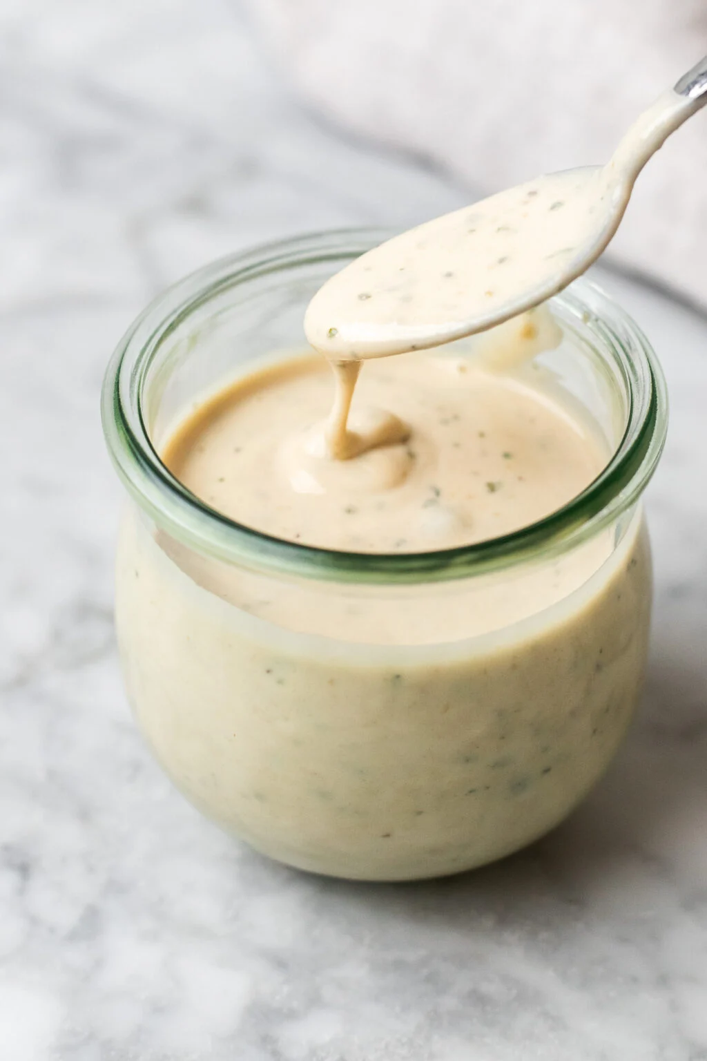 صلصة سيزر الكريمية بالطحينة هذه كريمية ولذيذة ومليئة بالنكهة إذا كنت تبحث عن فكرة جديدة لصلصة الطحينة لاستخدامها في السلطات، فستحب هذه الصلصة بالتأكيد!