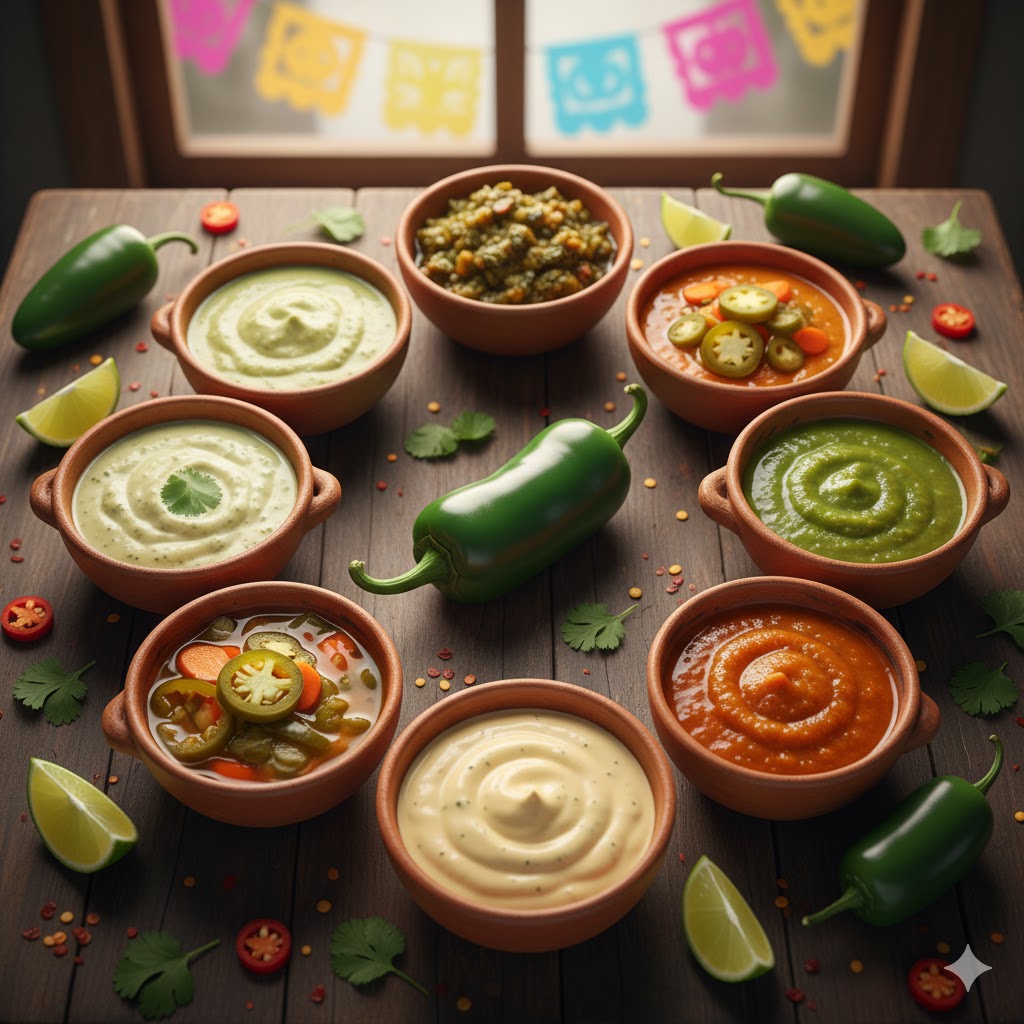يمكن استخدام محضر الطعام أو الخلاط لدمج المكونات التالية: الكريمة الحامضة، والمايونيز، والفلفل الحار المخلل، والكزبرة، وعصير الليمون، والثوم المفروم.