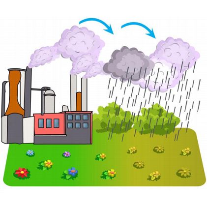 - المطر الحمضي هو في الأساس منتج ثانوي للأنشطة البشرية التي تنبعث منها أكاسيد النيتروجين والكبريت في الغلاف الجوي. مثال – حرق الوقود الأحفوري، وتقنيات التخلص من انبعاثات النفايات غير الأخلاقية.