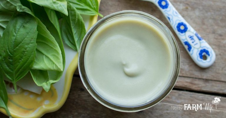 تحتوي وصفة كريم الوجه المضادة للشيخوخة اللذيذة التي تصنعها بنفسك على أوراق الريحان الطازجة وزيت بذور القنب المغذي وزبدة المانجو (أو الشيا) المنعمة للبشرة.