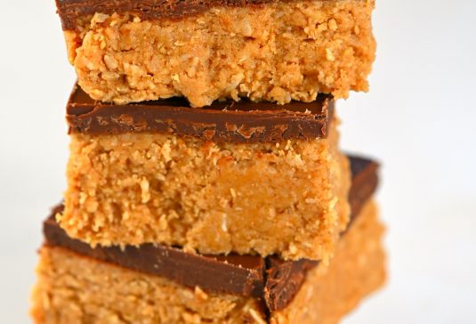 طريقة عمل ألواح شوفان بزبدة الفول السوداني والشوكولاتة بدون خبز