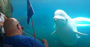 الحوت الأبيض يسمع باهتمام لعازف الكمان
