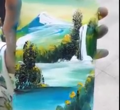فنان يرسم بورتريه منظر طبيعي بسرعه فائقة