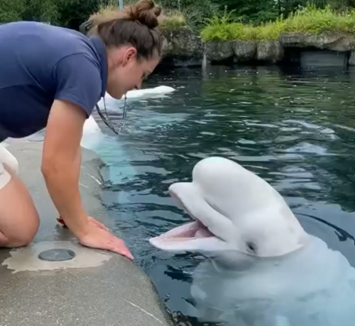 الحوت الأبيض يسمع باهتمام لعازف الكمان