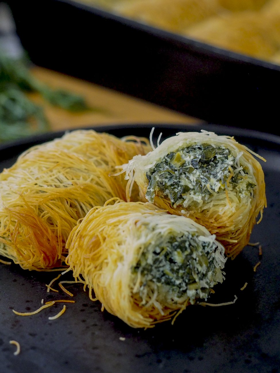 طريقة تحضير لفائف السبانخ اليونانية (سباناكوبيتا) بالكنافة المقرمشة
