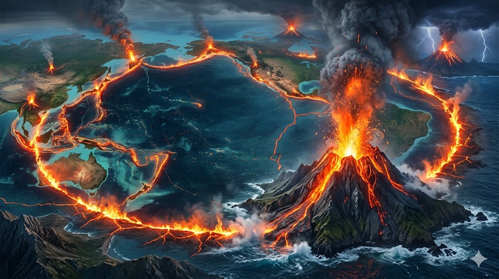 حلقة النار: استكشاف البؤرة البركانية الأكثر نشاطاً في المحيط الهادئ