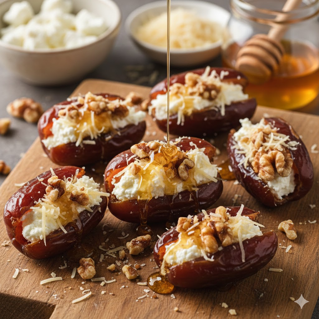 مقبلات سريعة يناير 2, 2026 مقبلات رمضانية فاخرة: طريقة عمل تمر محشو بجبنة الفيتا والبارميزان مع جوز مقرمش